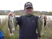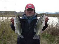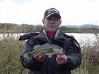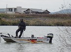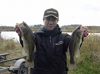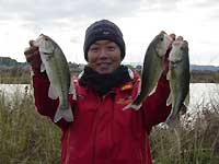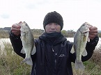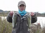 上流のフラットエリアにある土管や切株に引っ掛けて釣りました。ルアーは、レインズのワッキーサターンのジグヘットワッキー、シャッドリンガーのダウンショットです。 |