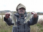 エリアは中流域3mミドル。 ルアーはこの時期定番のオリジナルスモラバ(ハイパーFスカートのクリアグリーンパール)+キックリンガー4インチ&スモラバ+リングスシャッド。