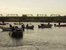 場所は、下流西岸の工場前。自作1/16スモールラバージグを水深3〜4mを超スローに動かして釣った。